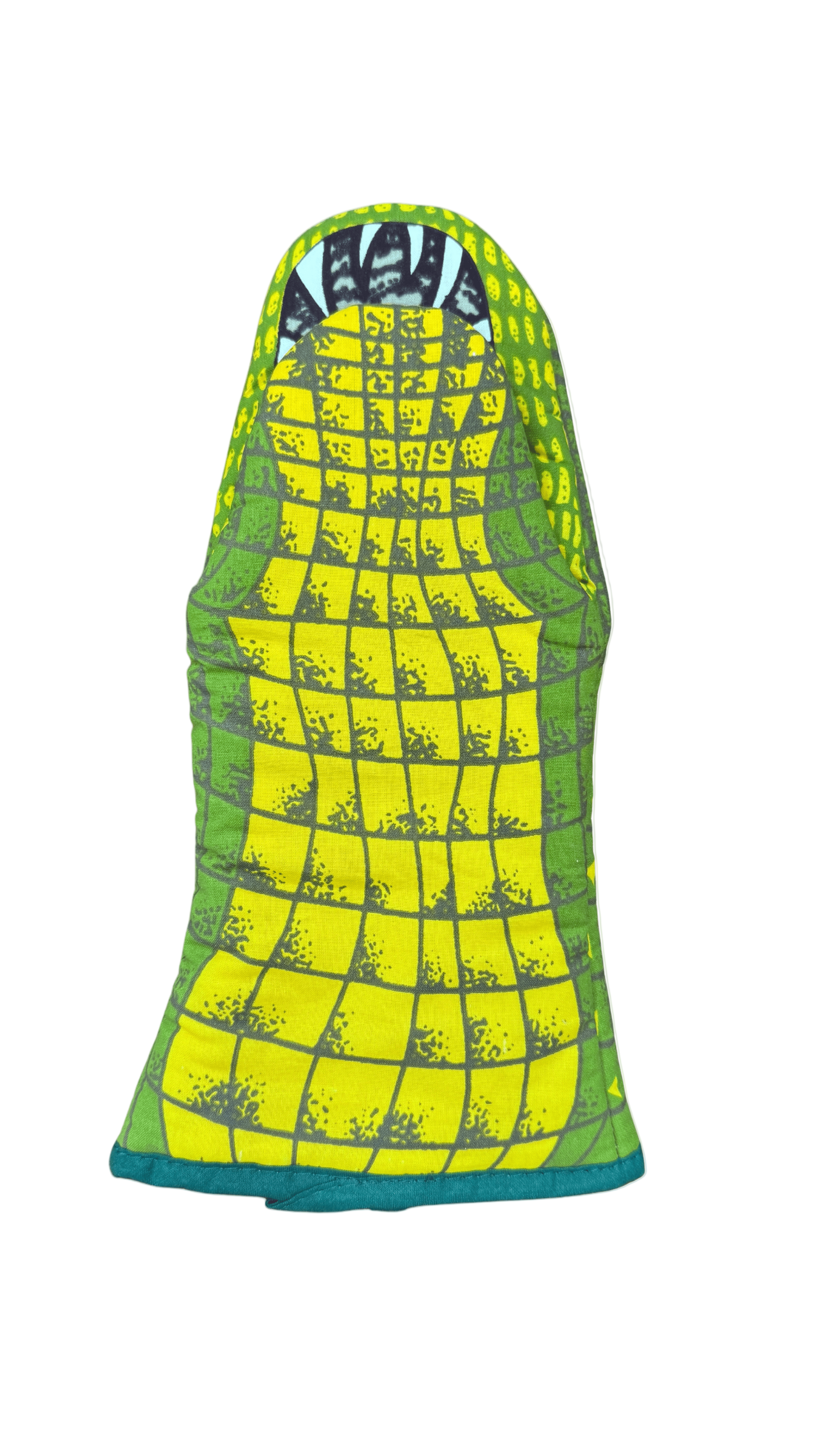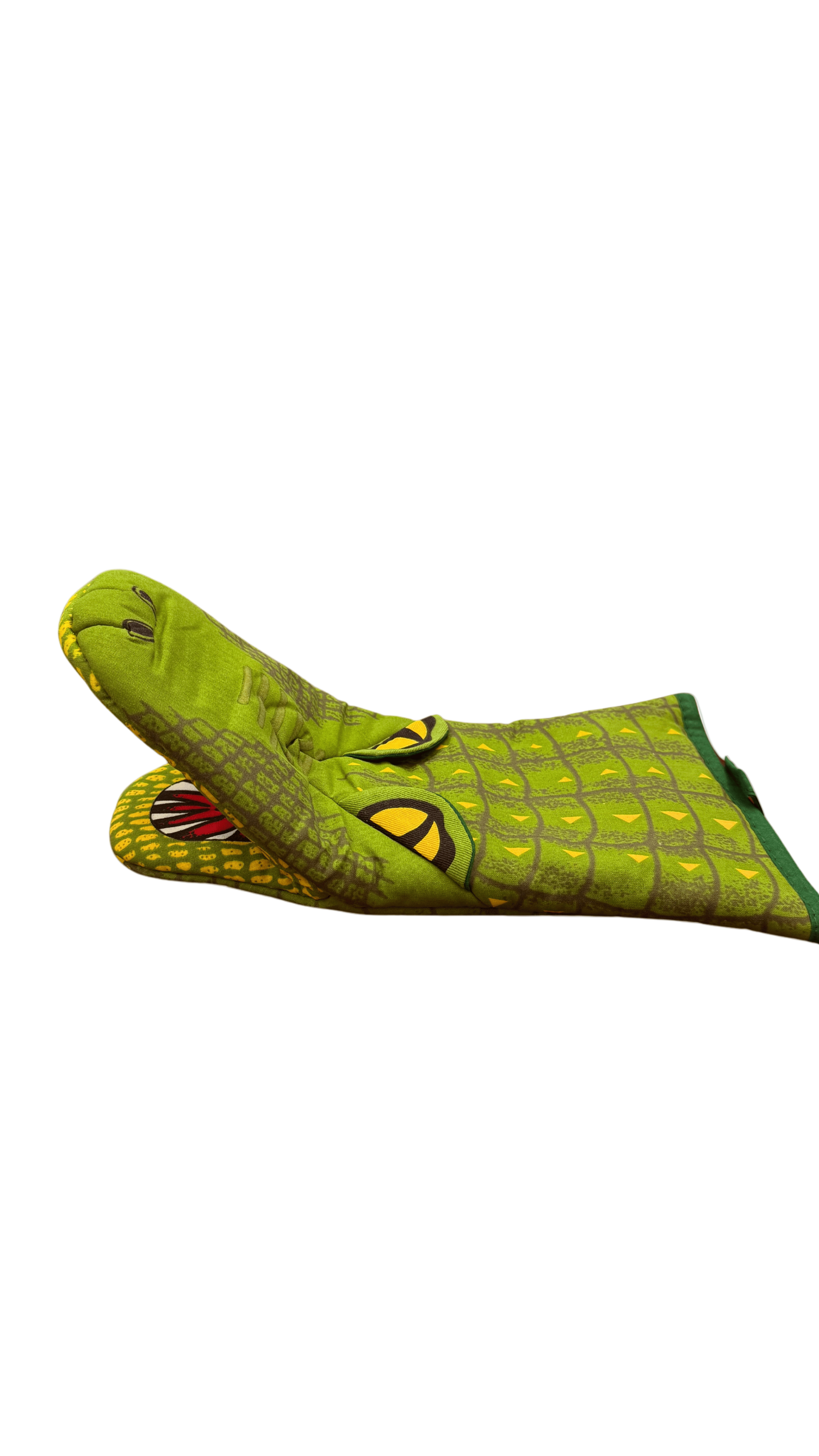 Turn up the fun in your kitchen with this playful Alligator Oven Mitt! Shaped like a friendly gator—with eyes, scales, and even teeth inside the mouth—this mitt brings a bite of Louisiana charm to your cooking routine. Made from durable, heat-resistant cotton with a quilted lining, it’s both practical and full of personality.