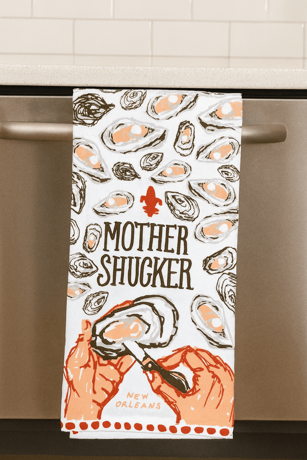 Shuck Yeah! Add a little bit of New Orleans magic to your kitchen today. Grab your "Mother Shucker" tea towel and let the good times roll!